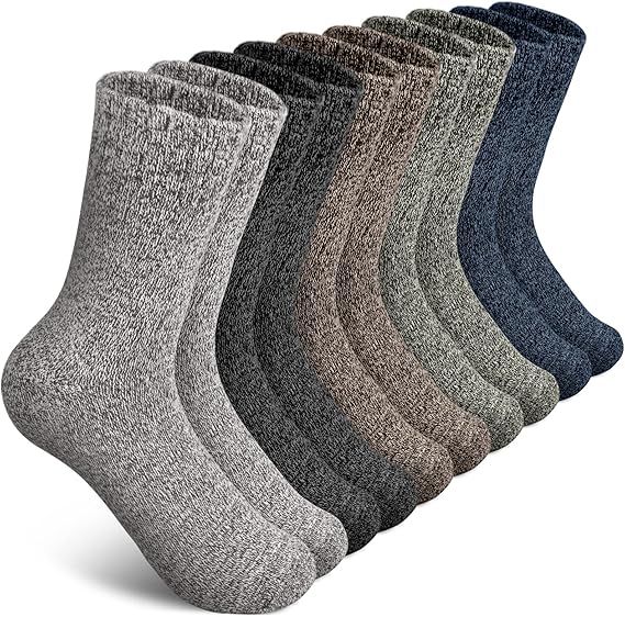 5 Pairs Wool Socks Mens, Warm Winter Socks, Soft Wool Hiking Socks, Casual Crew Socks for Men