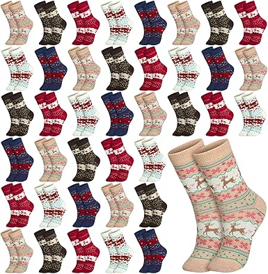 50 Pairs Winter Socks Christmas Women Bulk Wool Socks for Women Christmas Thick Knit Socks Winter Warm Crew Socks for Xmas