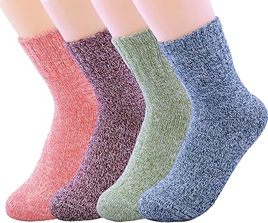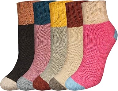 3-5 Pairs Womens Multicolor Fashion Warm Wool Cotton Thick Winter Crew Socks