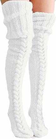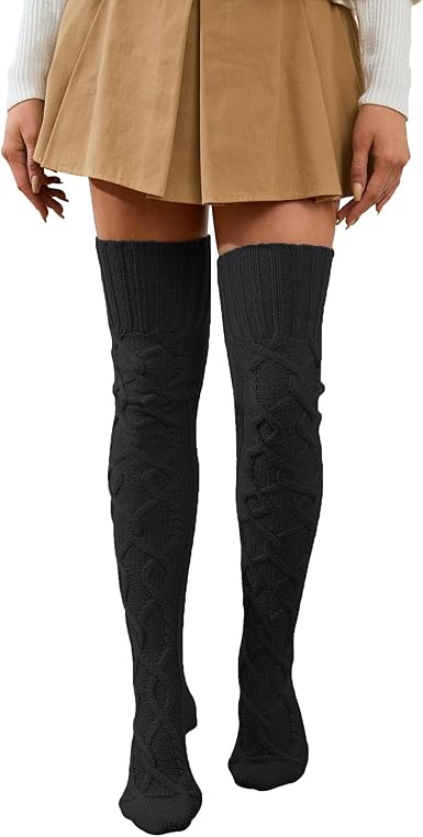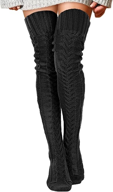 Cable Knitted Thigh High Socks for Women Winter Extra Long Over Knee High Leg Warmer Stockings