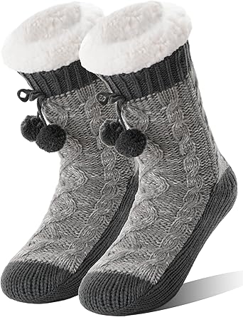 Womens Slipper Fuzzy Grips Socks Fluffy Winter Warm Thick Thermal Cozy Plush Non Slip Cabin Soft Fleece Socks