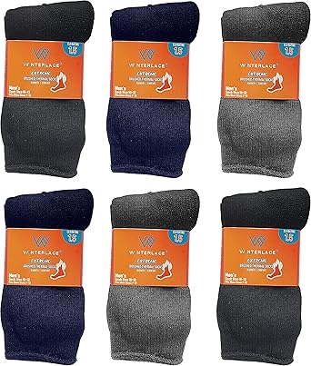 6 Pairs Mens Thermal Socks, Brushed Interior Warm Winter Thick Heavy Duty Cushioned Crew Sock, Bulk Pack
