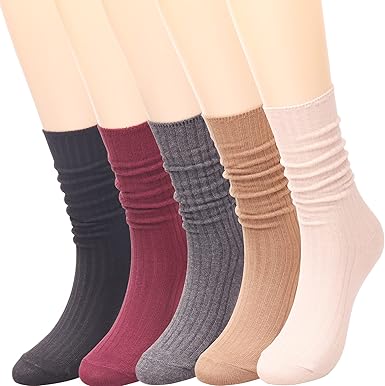 Women Slouch Socks Knit Mid Calf Rib Tube Scrunchy Slouchy Crew Socks
