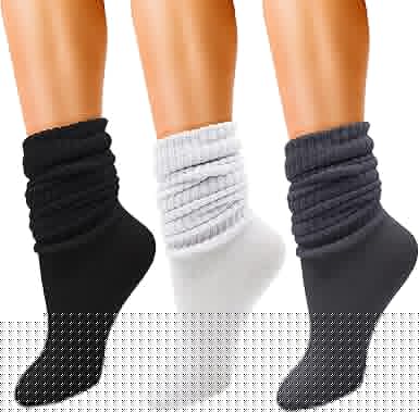 3 Pairs Slouch Socks for Women, Soft Extra Long Scrunch Knee High Sock, Bulk Pack