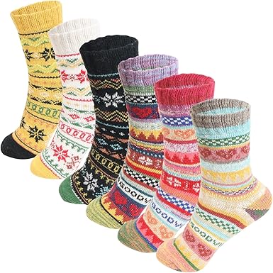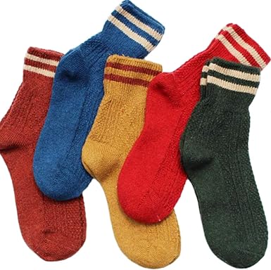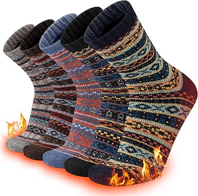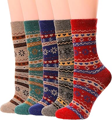 5Pack Womens Vintage Winter Soft Warm Thick Cold Knit Wool Crew Socks, Multicolor, free size