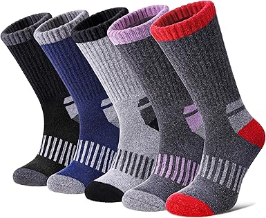 Merino Wool Hiking Socks for Men & Women 5 Pairs Thermal Warm Winter Thick Cushion Moisture Wicking Crew Boot Socks