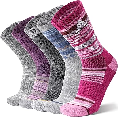 Merino Wool Hiking Socks for Womens Thermal Warm Winter Boot Crew Cushion Cozy Thick Work Gift Socks 5 Pairs