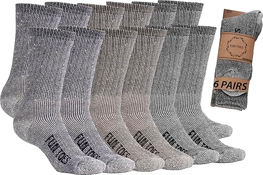 Men's Hiking Crew Merino Wool Socks 6 Pairs Lightweight, Reinforced Size 8-12