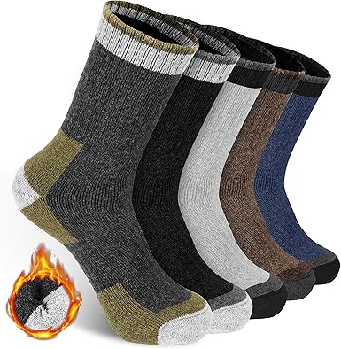 5 Pairs Wool Socks Mens Extra Thick Merino Winter Warm Thermal Socks for Men Fashion Crew Mens Socks Size 7-13