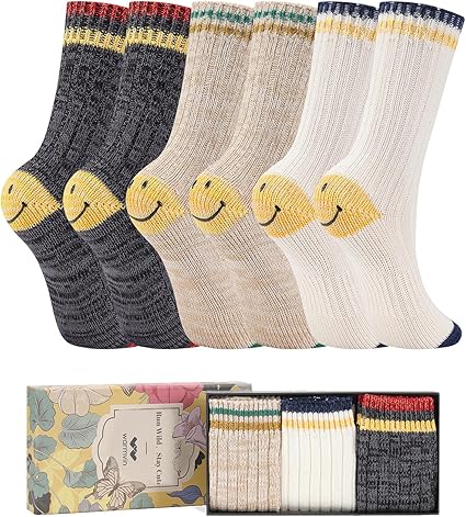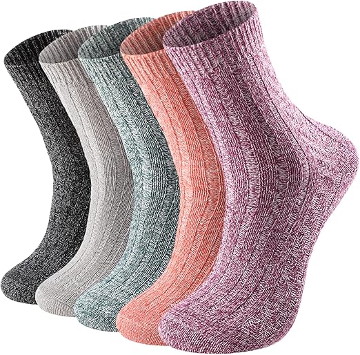 Thick Wool Vintage Classic Hiking Crew Socks for Women Soft and Comfortable - 5 Pairs Per Pack