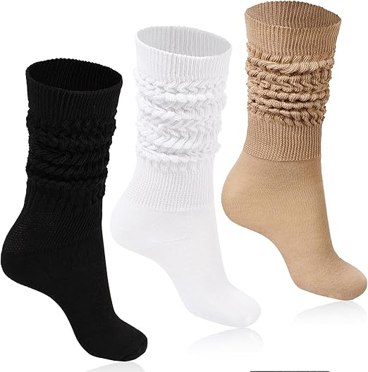 Women Slouch Socks 3 Pairs Extra Long Cotton Knit Knee High Thick Scrunch Socks Size 5-11
