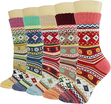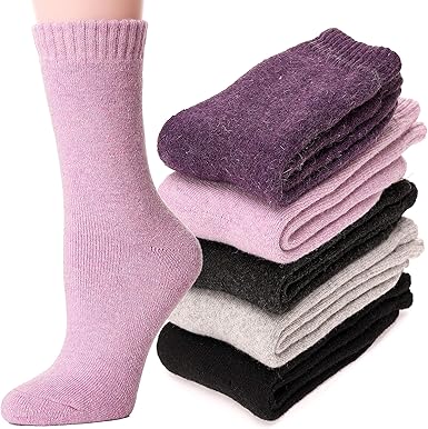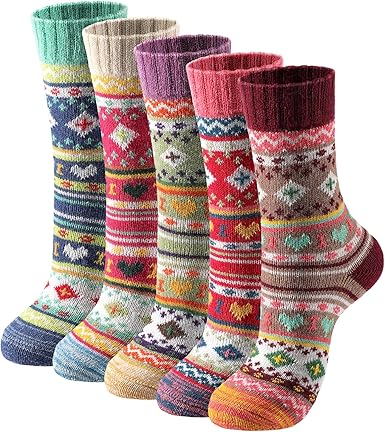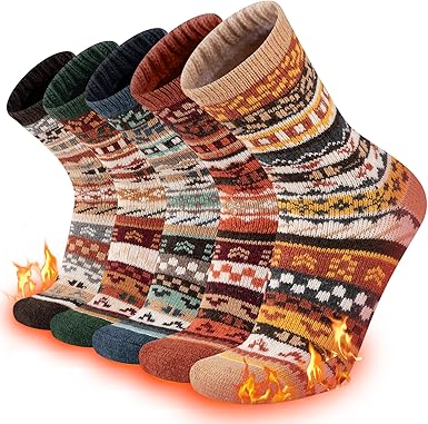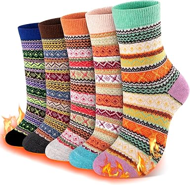 Wool Socks Women Winter Warm Socks Thermal Thick Cozy Crew Socks for Womens Gifts 5 Pairs