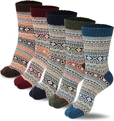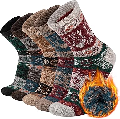 Warm Wool Socks Mens Winter Thermal Thick Crew Cold Weather Pattern Socks (5 Pairs)