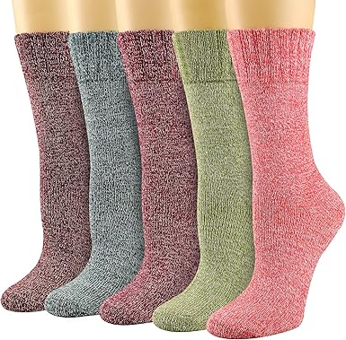 Wool Socks for Women,5 Pairs Warm Hiking Walking Cozy Crew Boot Socks Thermal Gifts Socks, Size 5-10