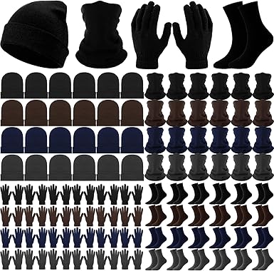 Bulk Winter Knit Beanie Hats Gloves Neck Warmers Socks Set for Unisex Men Women Donation Homeless Charity