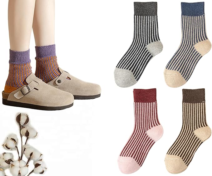 Womens Strip Ankle Socks Cute Athlete Ribbed Colorful Slouch Crew Cotton Casual Sock Size5-10.5