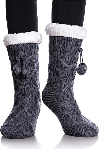 Womens Slipper Fuzzy Grips Socks Fluffy Winter Warm Thick Thermal Cozy Plush Non Slip Cabin Soft Fleece Socks