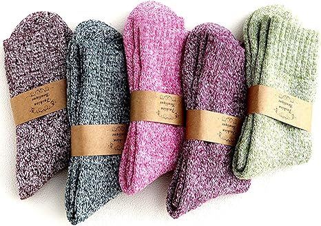5Pairs Ladies thermal Winter socks, Womens Thick Knitting Warm & comfy Wool Crew Vintage Style Sock
